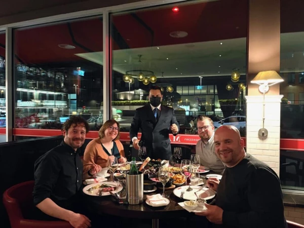 Der Abend war ein voller Erfolg! Die Hörer und Tim fühlten sich sichtlich wohl bei Ibrahim Kalender, ihrem Gastgeber des MASH Steakhouses. Und so probierten sich die Gäste fröhlich durch die kulinarischen Highlights verschiedener Länder, genossen Dry-Age-Fleisch aus Dänemark, ein Stück vom Hereford-Rind aus Uruguay und saftiges Tomahawk aus Australien. Dazu gab es Champagner, ausgesuchte Weine und anregende Gespräche.